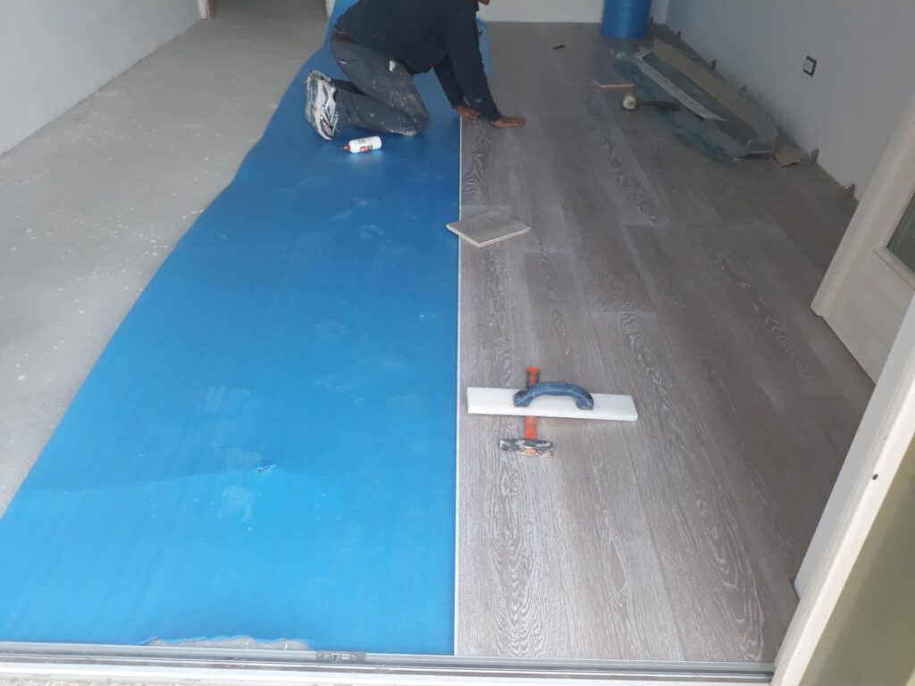 Considerare sempre la formazione di un giunto di dilatazione in corrispondenza di ogni soglia e usare un battiscopa col “piedino” per coprire il bordo perimetrale del pavimento finito.